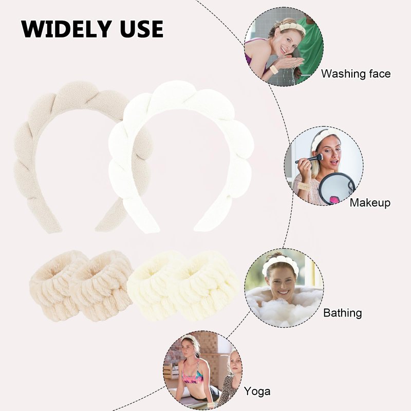 - 【Face Wash Headband and Wristband Set】You will receive 2* puffy spa headbands and 4* wrist bands for washing face. A practical combination can meet your daily washing. No more water running down your arms and getting your sleeves wet while washing face.