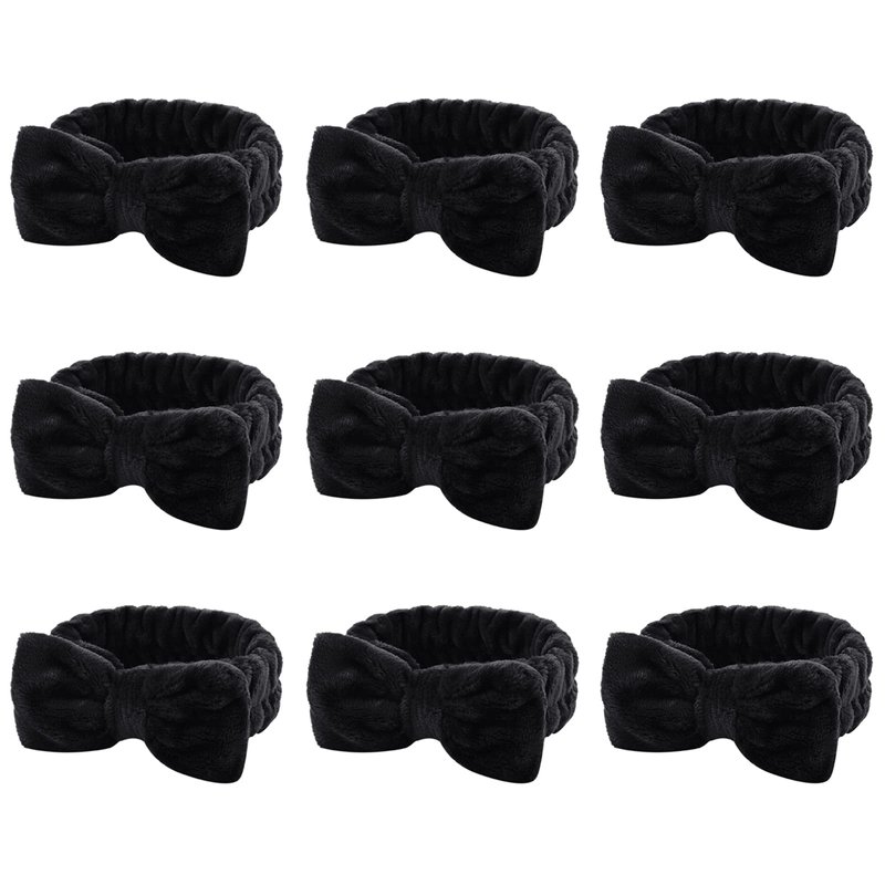 WHAVEL 9 Pack Black Spa Headband for Washing Face, Makeup Headband Skincare Headbands Face Wash Headband Bow Headbands Facial Headband Soft Fluffy Headband for Washing Face (A. Black)