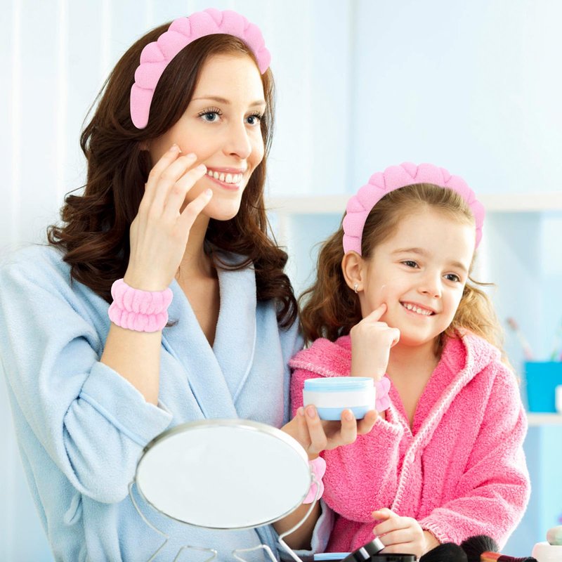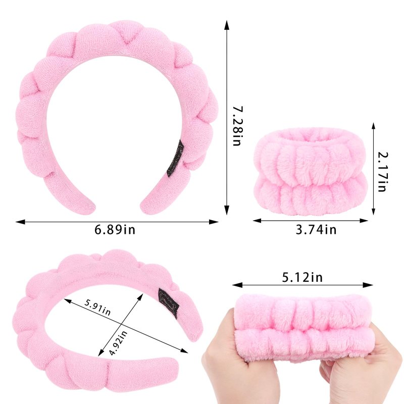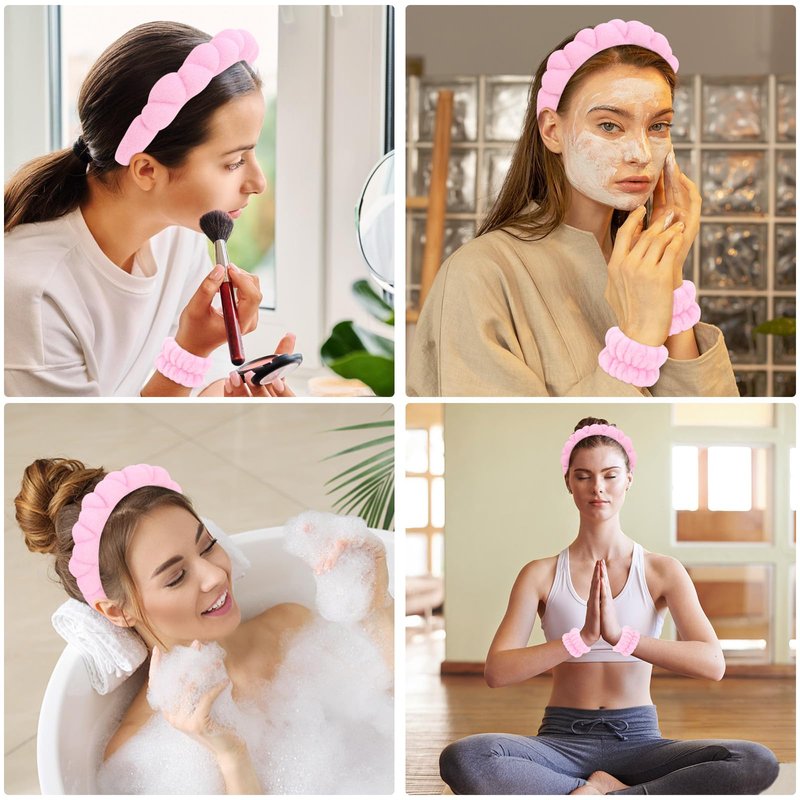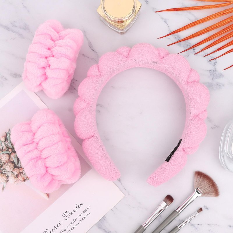 - 【Improve Your Washing Routine】Includes 1* puffy headband and 2* wristbands. Must have for clean face. The spa headband keeps hair out of face. The wristbands keep water from running down arm. No more water getting your sleeves wet while washing face.