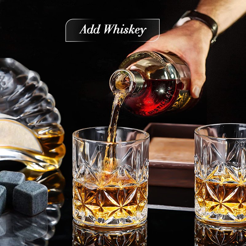 - 🎁 [Double Protection]. For whisky gift sets, we use double protection design, on the one hand, can protect the glass inside from being broken by impact, on the other hand, can protect the outside of the wooden box will also not be worn.