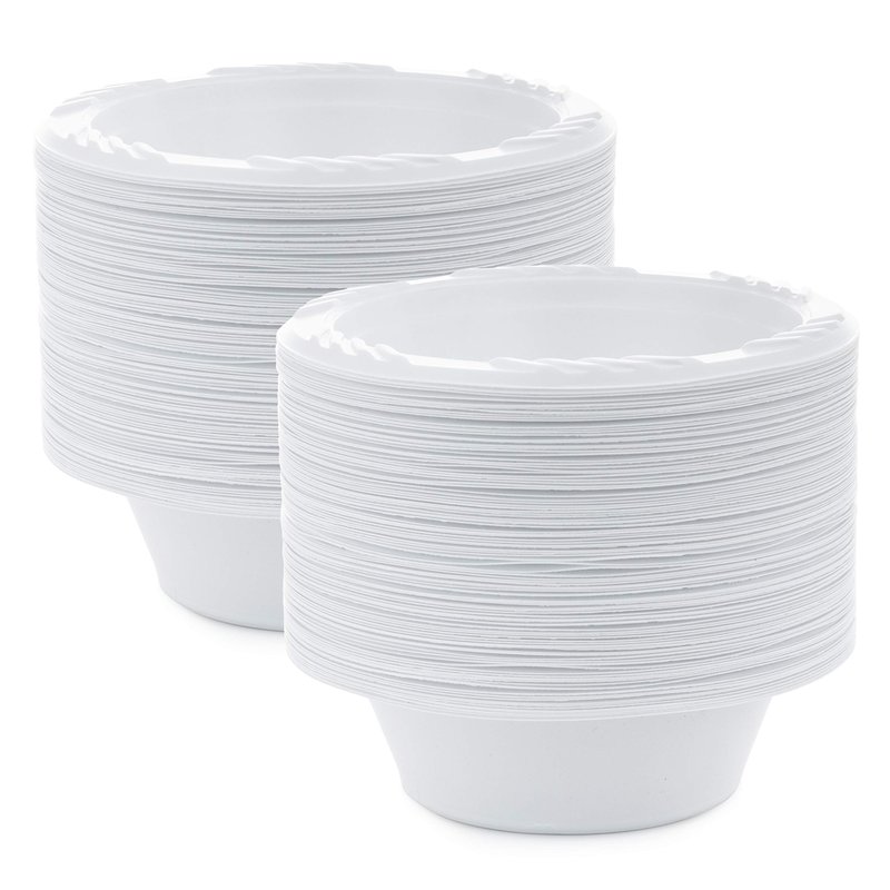 - PACKAGE INCLUDES: 100 White lightweight plastic soup bowls - 12 oz