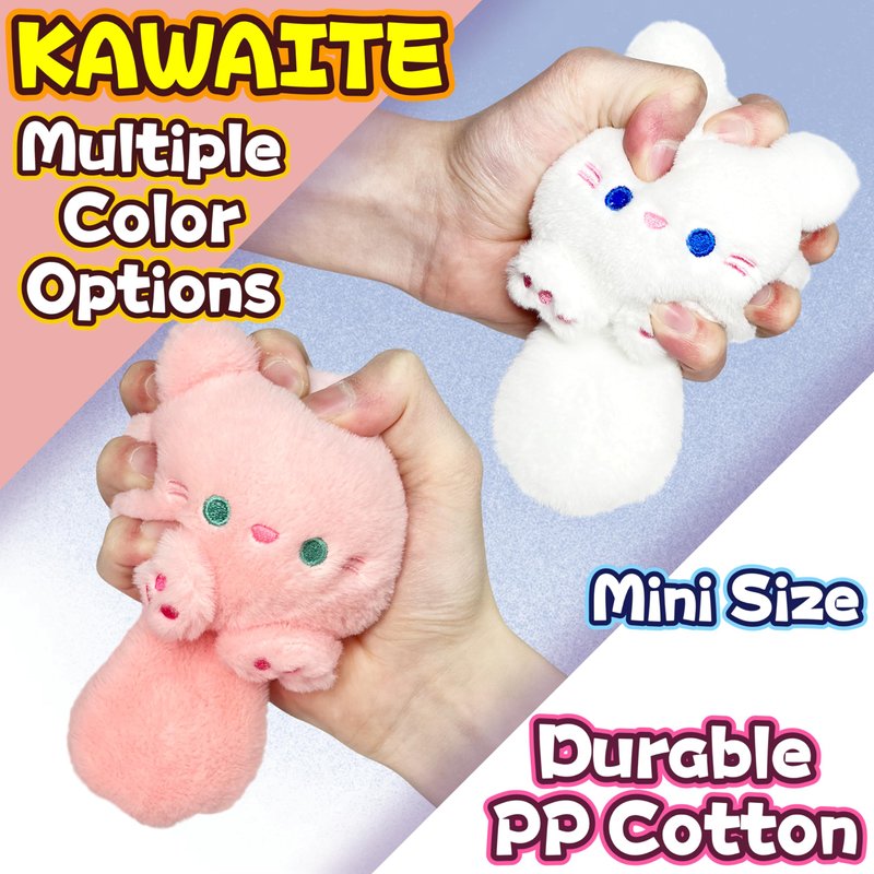 - CUDDLY CAT PLUSH TOYS KEY CHAIN: The soft and cute cat stuffed animals are available in a variety of colors: orange, gray, pink, white. Our mini cat plush toys are very soft and makes fun sounds when you pinch the tail, perfect for boys and girls to play with.