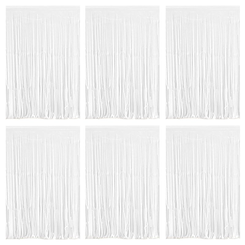 White Foil Fringe Curtain 3.3×8.3FT 6 Packs, Metallic Tinsel Curtains Party Streamers for Birthday Graduation Baby Shower Decoration (6pcs,3.3FT×8.3FT, White)
