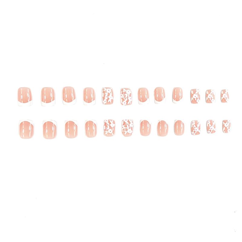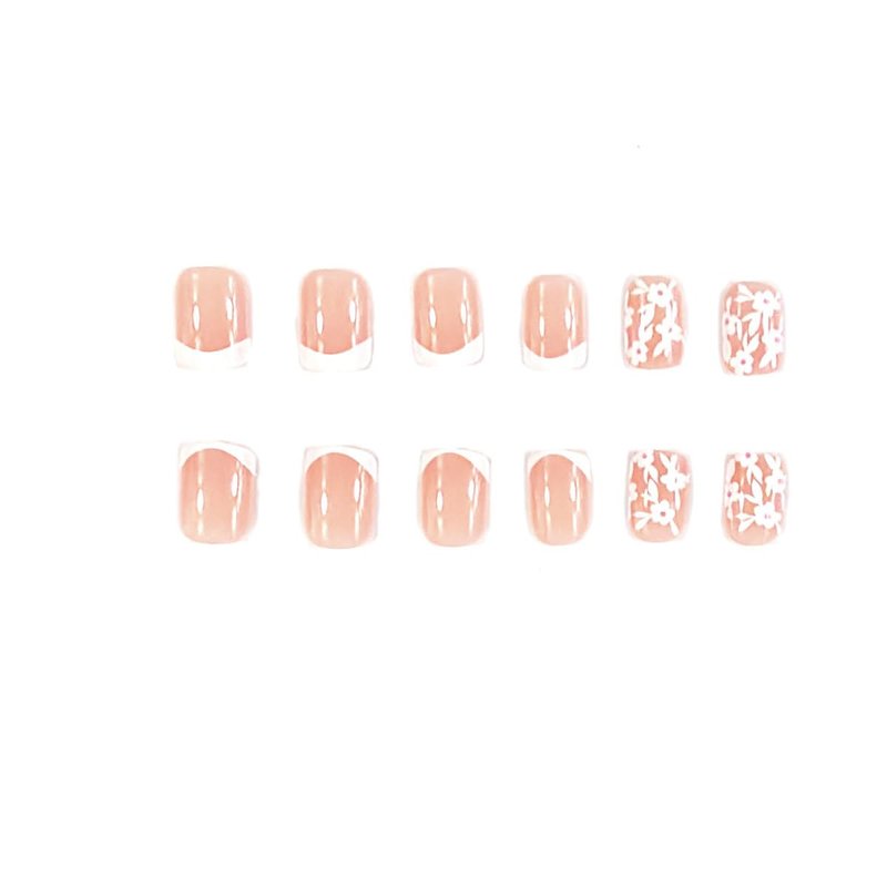 - Unique Design False Nails- This square fake nails with designs are simple and elegant, highlighting the low-key and taste. With white nail tip floral elements, French and other design is a simple and versatile manicure style.