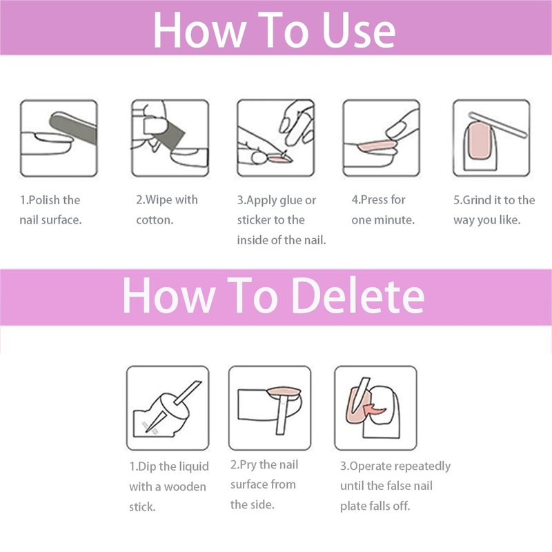 - Easy to Use: Halloween false nails with adhesive nails tabs can get your favorite manicure in just 5 minutes without waiting at the nail salon. Some simple steps allow you to get the same impressive professional effect at home. When removing the press on nails, soak the nails in water for about a minutes to remove them more easily.