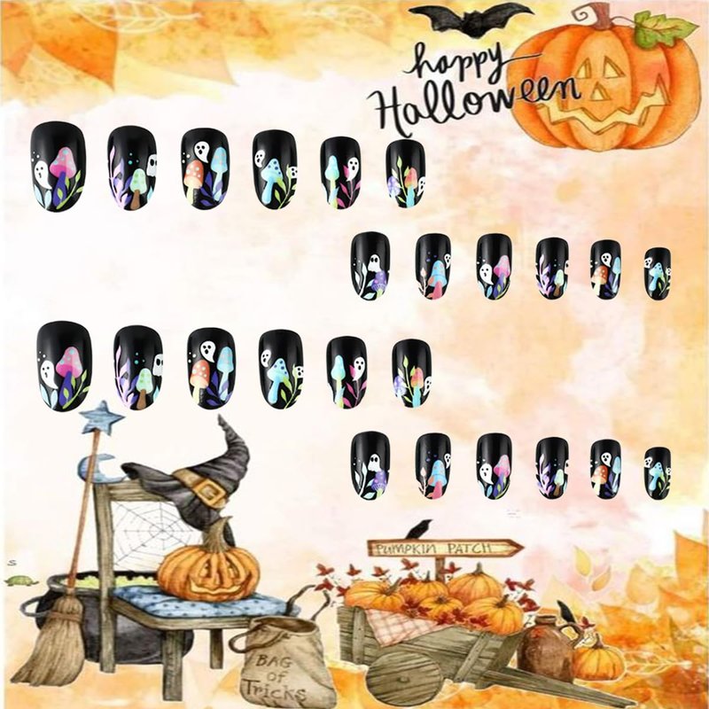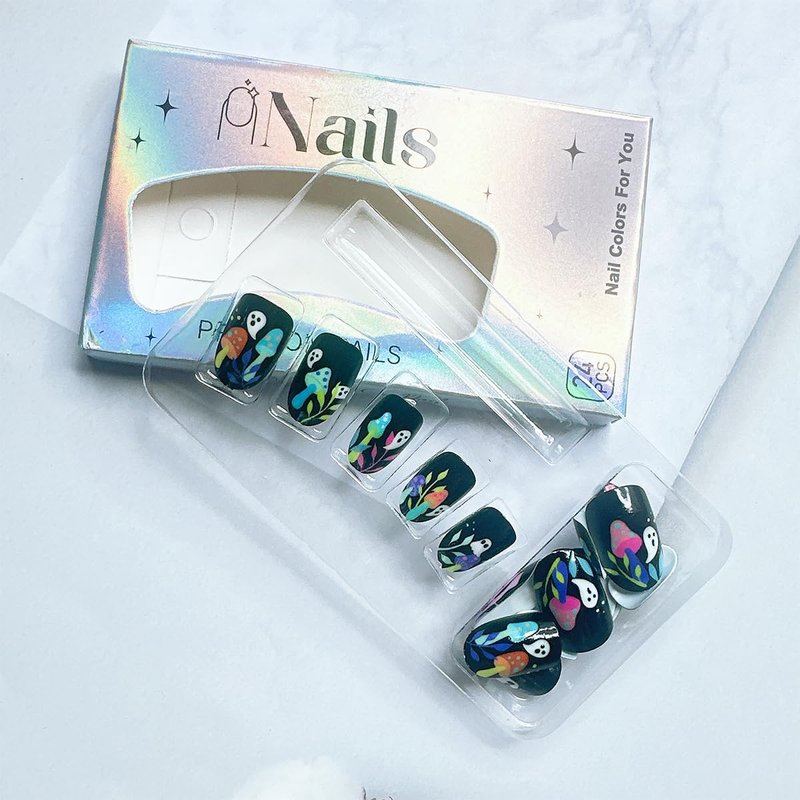 - Press on Nails with Design: There are 24 cute ghost press on nails in one pack, beautiful mushroom acrylic nails comes with has 12 different sizes, you can chose them to be polished to the most suitable size, it fits any finger perfectly.