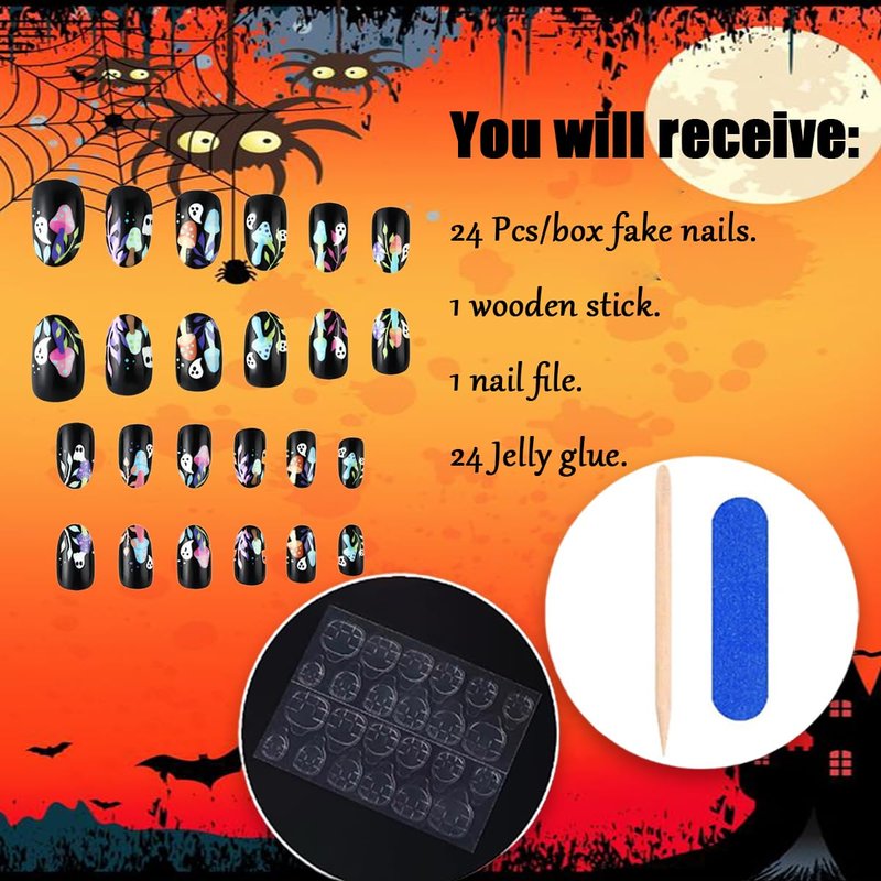 - Widely Application: You can change your nails style in anytime and anywhere, instead of spend lots time and money at nail salon. Our press on finger nails are suitable for dating, party, shopping etc. Halloween ghosts artificial finger nails is also a perfect gift for your partners, family and friends.
