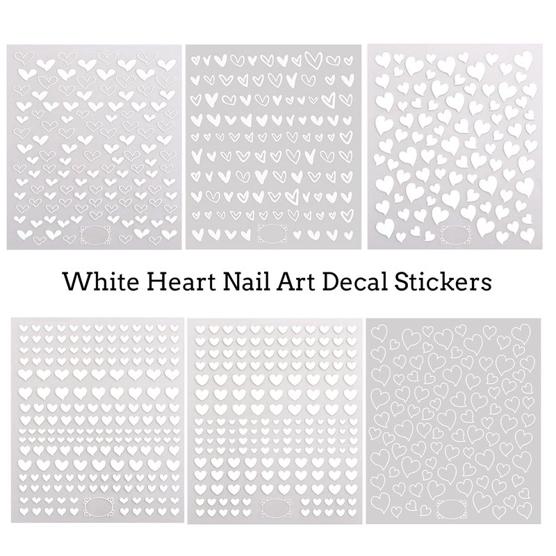 White Heart Nail Art Decal Stickers for Nail Art Designs and Nail Decorations Self Adhesive Nail Decals for Women Girls Kids for Fingernails Acrylic Nails Decor (6 Sheets)