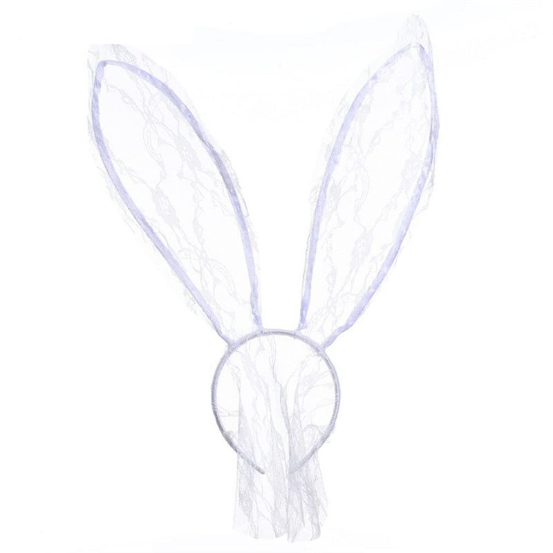 White Lace Bunny Ears Headband Women Ladies Rabbit Ear Lace Veil Mask Headbands Halloween Party Cosplay Hairband
