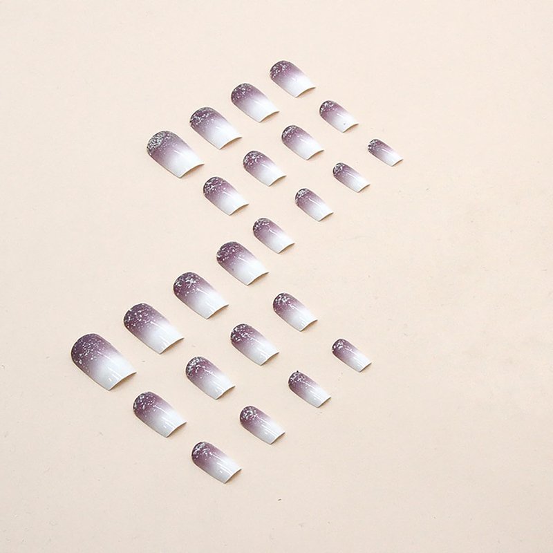 White Press on Nails Medium Square 24Pcs Artificial Glossy Fake Nails with Gradient Purple Glitter Designs Full Cover Coffin False Nails Glue Stick on Nails Fingernails with Charm for Women Girls