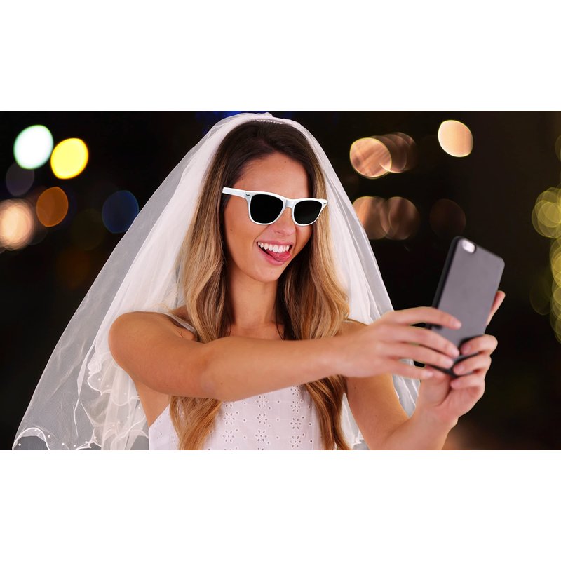 - BACHELORETTE-WEDDING PREMIUM QUALITY STURDY FRAMES/LENSES: Seeing is believing. When you use our White Retro Wayfarer Style Sunglasses, you can actually see out of them and use them everyday. Not only that but the plastic we use is also great sturdy quality for both the frames and lenses. Fiesta de boda gafas de sol
