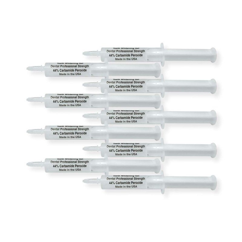 - 10 Syringes of 44% Teeth Whitening Gel, 2 Mouth Trays & 1 Shade Guide
