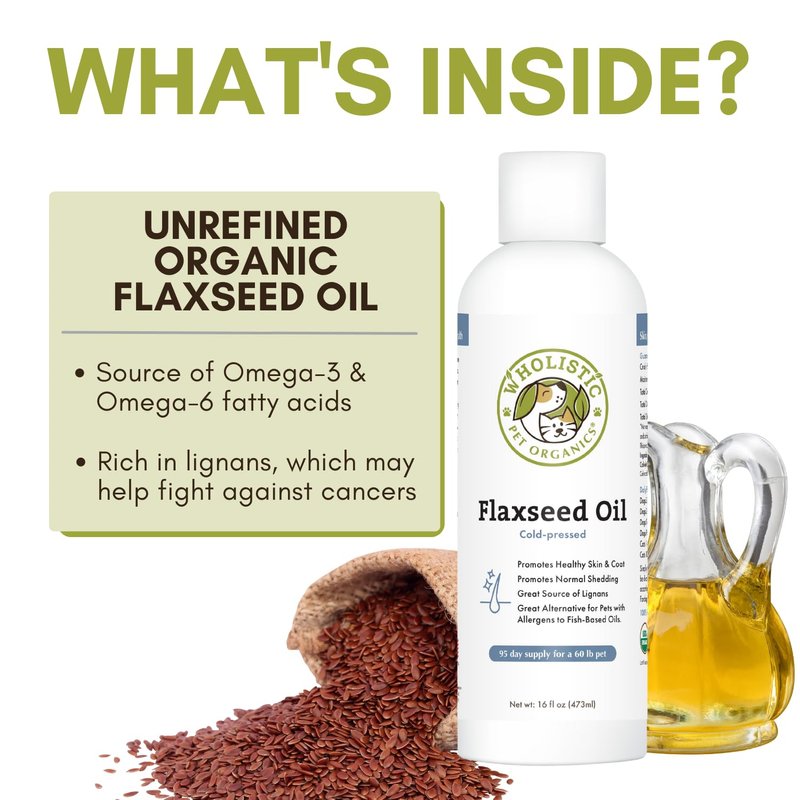 • UNREFINED, COLD-PRESSED FLAX SEED OIL: Our pure organic flaxseed oil is cold-pressed for quality and offers powerful antioxidant support, a dosage of flaxseed oil also ensures that your pet gets a proper balance of nutrients that may also boost their appetite.
