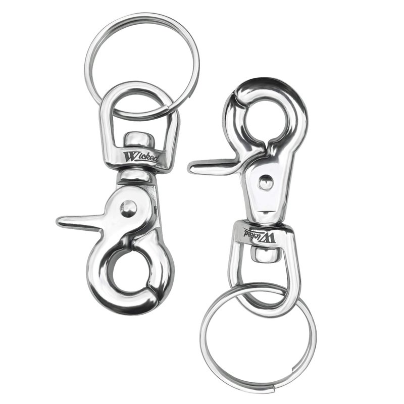WICKED 316 Stainless Steel 2 5/8” Swivel Eye Trigger Snap Hook and Split Ring for Scuba - Set of 2 Each