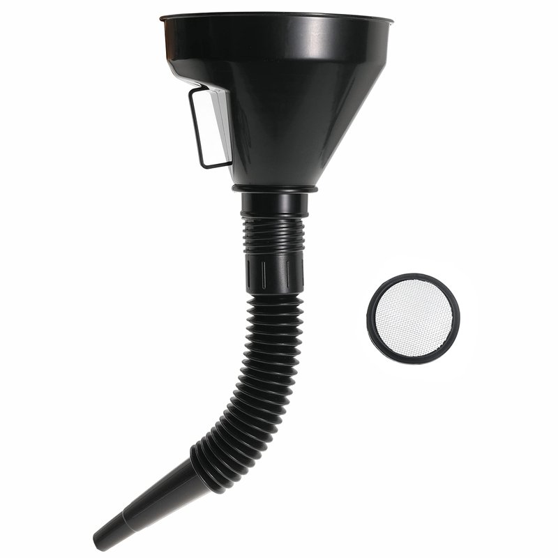 Wide Mouth Oil Funnel with Flexible Extension Nozzle Hose with Handle Mesh Screen Filter for Cars Motorcycles Engine Oil Kerosene Gasoline Gas Fuel Diesel Water Fluid Coolant Liquid Black 1PC (1)