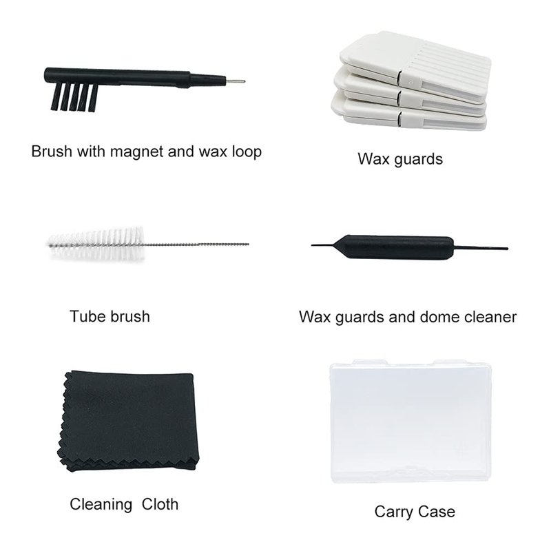 - ★Contain:3packs, 8 filters per pack,brush with magnet and wax loop , tube brush, wax guards and dome cleaner ,cleaning cloth, Carry case