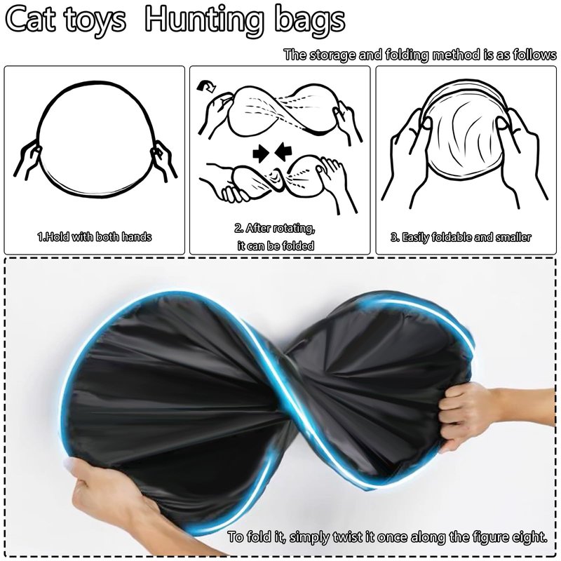【Hunting Bag + Automatic Rolling Ball】 A combination of a hunting bag for cats and an automatic rolling ball toy for cats. Put the ball in the bag, and the ball will automatically roll in the bag, arousing the cat's curiosity and stimulating the cat's hunting instinct. The ball will continue to roll inside the bag to eliminate the cat's lack of exercise.