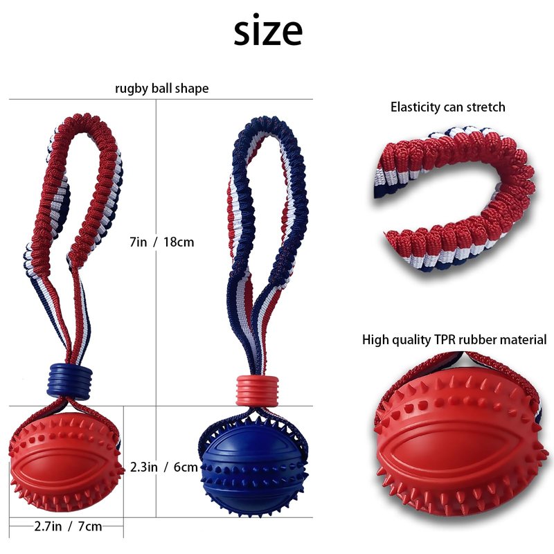 - 【Specifications and dimensions】 The diameter of the dog toy ball is about 2.6 inches/about 6.5 cm, and the total length is about 11.5 inches/about 29 cm. The ball is made of TPR, an innovative, durable, environmentally friendly and non-toxic rubber material that is suitable for most breeds of small dogs to play, train and chew.
