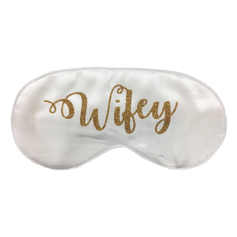 - White Eye Mask Features Wifey in Gold Glitter Print