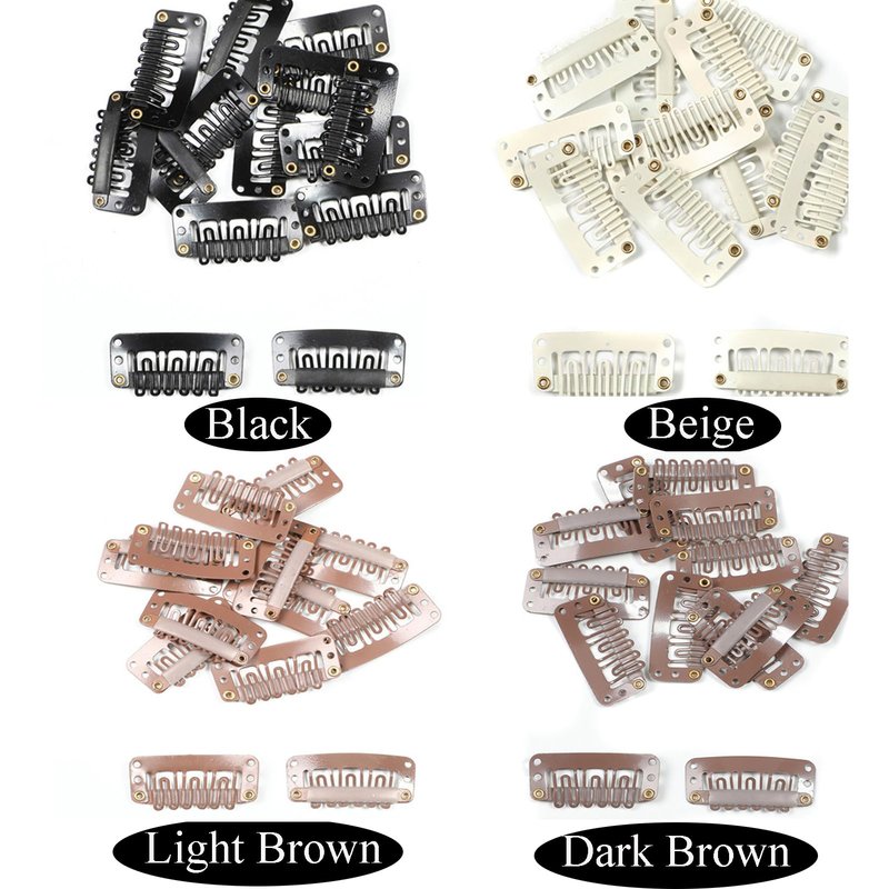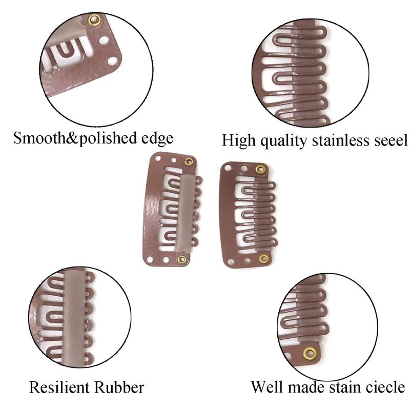 Wig Clips with Soft Rubber Hair Extensions Clips 32mm U-Shape Snap Comb Clips Hair Wig Clip Needles Thread Scissors Set for wig hair extensions (Dark Brown)