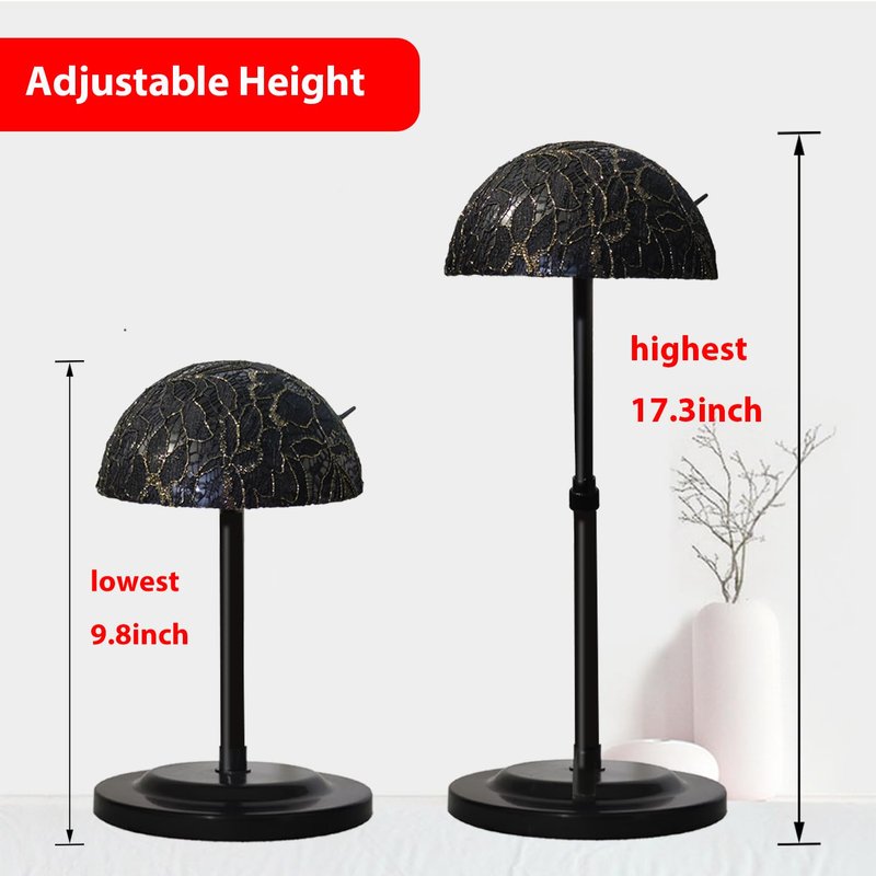 - ⭐1.Wig Stand Package:1 PCS Wig Stand Holder (Not Include The Wig). Height Adjustable (9.8-17.3inch), Suitable for Multiple Wigs, Hats, Caps Various Cosplay Masks, Helmets with Steady and Sturdy Design.