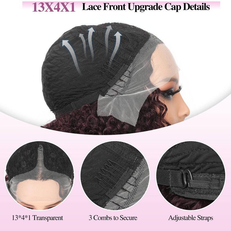 • UPGRADE HAIRLINE: 13×4×1 curly T shape hand-knitting lace hairline,and made of real swiss lace which is super soft and comfortable to skin. The Hand-knitting small part of the hairline will make the wig more natural and realistic, easy to install.