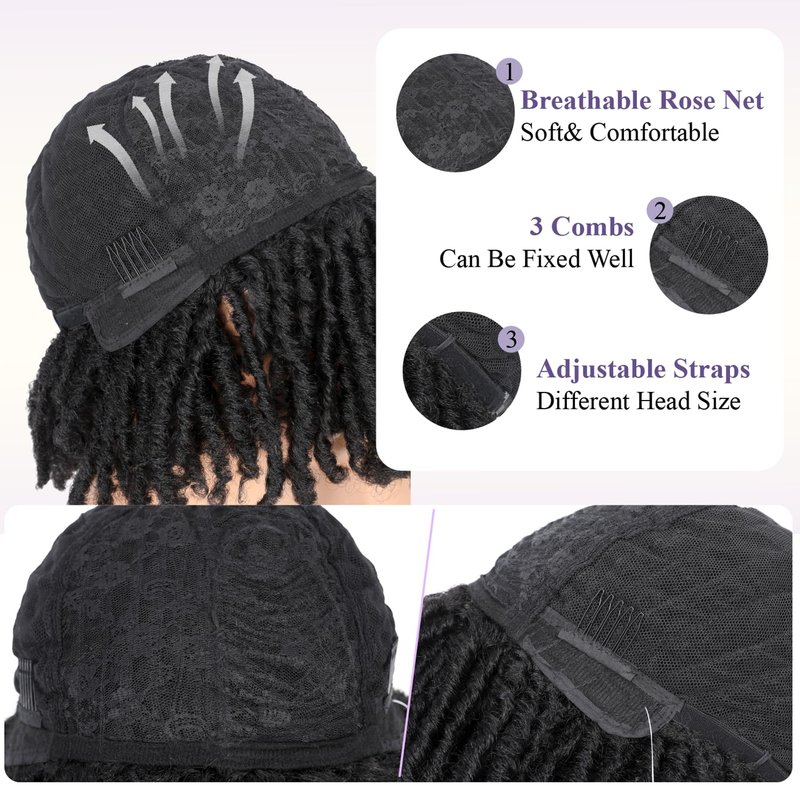 WIGER Dreadlock Wig Short Faux Locs Twist Wigs For Black Women Afro Braided Curly Synthetic Wigs For African American Women Daily Party Use(6 inch,1B)