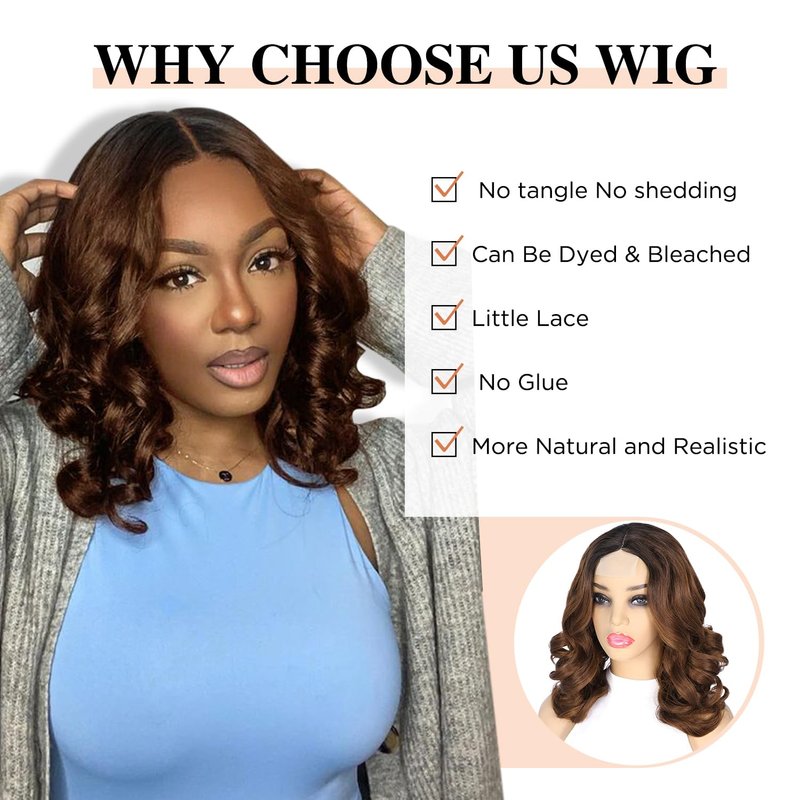 Loose Wave Wig Short Body Wave Wigs Short Bob Wigs Shoulder Length Wig Ombre Brown Synthetic Wig Middle Part Wigs For Women