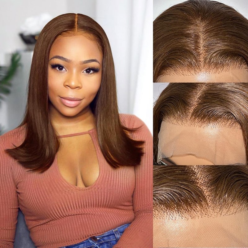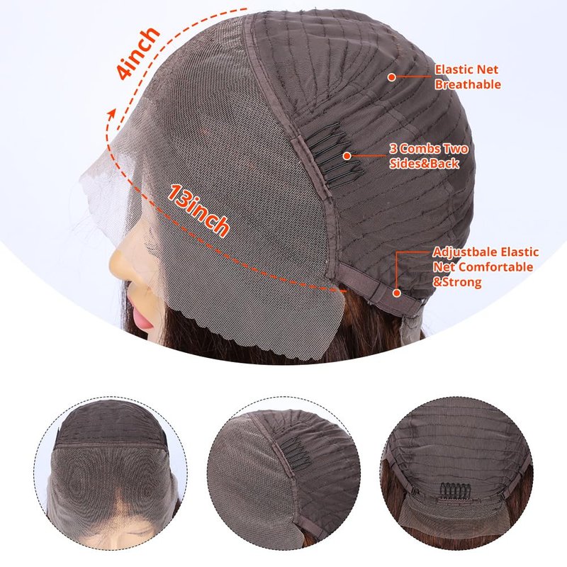 - ♥Chocolate Brown lace Front Wig Details:13x4 inches short straight lace front bob wig, deep parting space with 3 combs and 2 adjustable straps inside for more secure & comfort fit.with baby hair, very natural and beautiful it looks more natural soft.