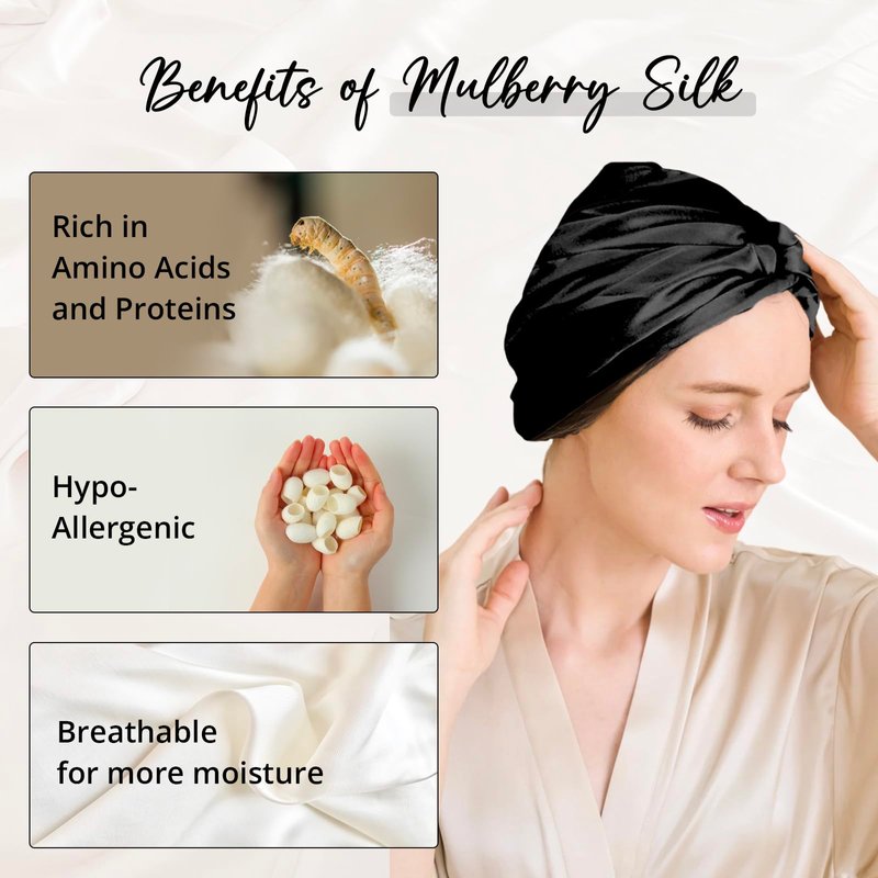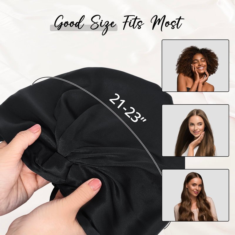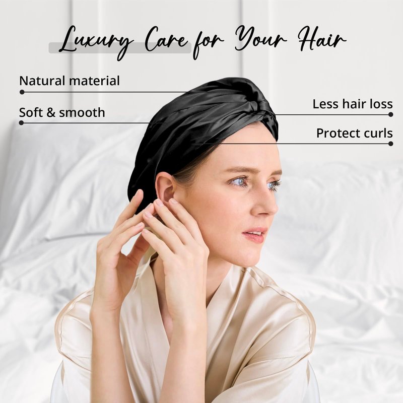 - DOUBLE-LAYER BONNET, MORE CARE FOR HAIR: 2 layers of silk means more protection for your hair from breakage & frizz at night, so you have smooth hair in the morning. Pure silk has the natural protein structure that retains hair moisture, locks in hair oils & prevents hair loss