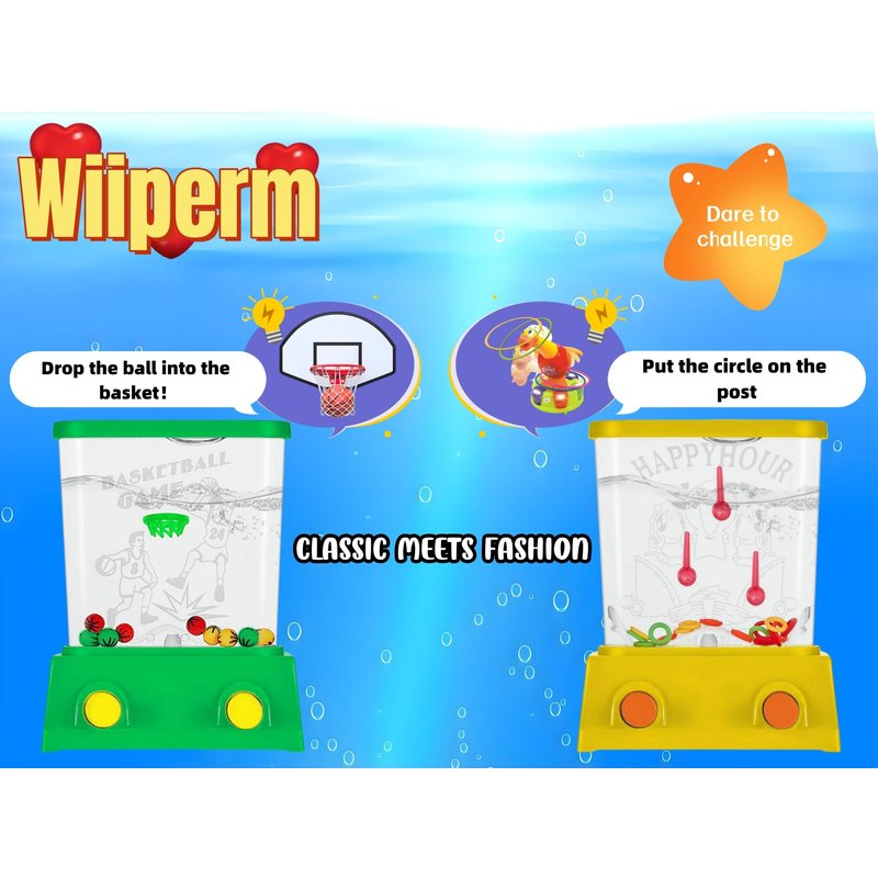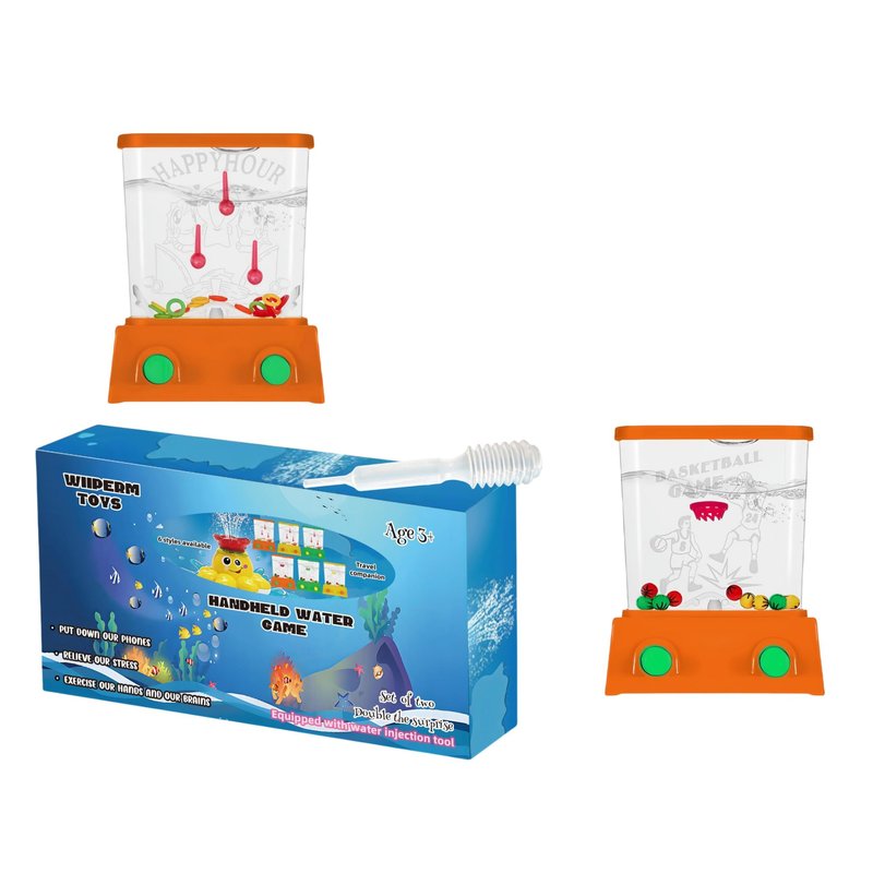 - Our water ring toss handheld game toys come in a variety of color and style combinations to give you freedom of choice.We have customized the exquisite packaging, including two exquisite and mini portable game toys. One is a water ring game handheld, the other is a new style of shooting basketball, they come in a variety of vibrant colors, including green, yellow, orange, and also come with a water injection gadget.