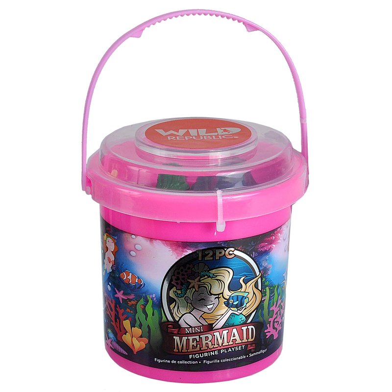 Wild Republic Mermaid Figurines Bucket, Toy Bucket, Mermaid Doll, Aquatic Animals, Gifts for Girls, Bath Toys, 12Piece