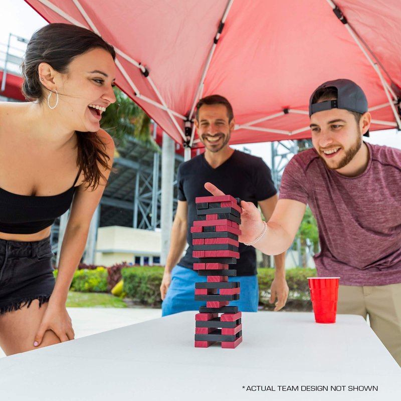 - A CLASSIC JENGA GAME, IN YOUR FAVORITE NFL TEAMS - A wooden block game that challenges players to push and pull stacking blocks from the tower and strategically place them back on top. Last player standing without knocking the tower down, WINS.