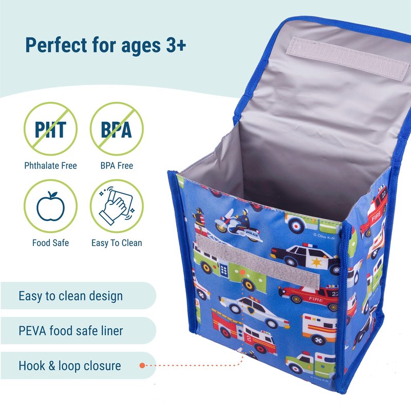 - TRAVEL-FRIENDLY DESIGN – Make travel easy with our lightweight lunch bags for kids that features a hook and loop closure with a top carrying handle and velcro closure This boys and girls lunch bag fits your food container and collapses flat