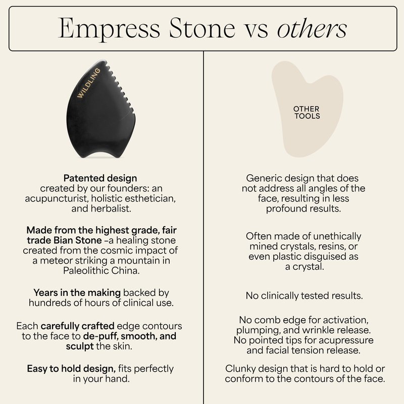 - Designed to lift, sculpt, tone, and de-puff the skin, the Empress Stone is Wildling's uniquely designed and perfected Gua Sha stone.