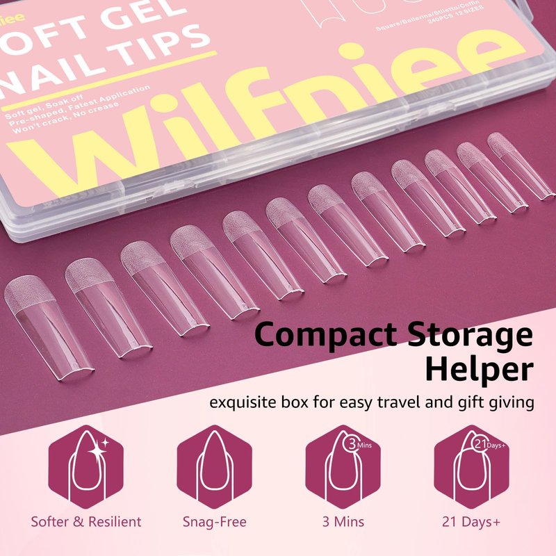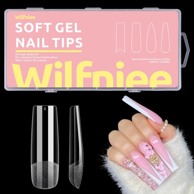 - SOFT GEL NOT EASY TO BREAK - The Wilfniee gel nail tips are made of quality soft gel material, with strong toughness and malleability, highly fit your nail bed, not easy to break. No matter how you twist, it will return to the original shape in a few seconds without crease. The no crease design also make the color more evenly, easier to DIY your favorite nail art effect. The square nail tips can use together with nail polish, color gel, dip powder, etc.