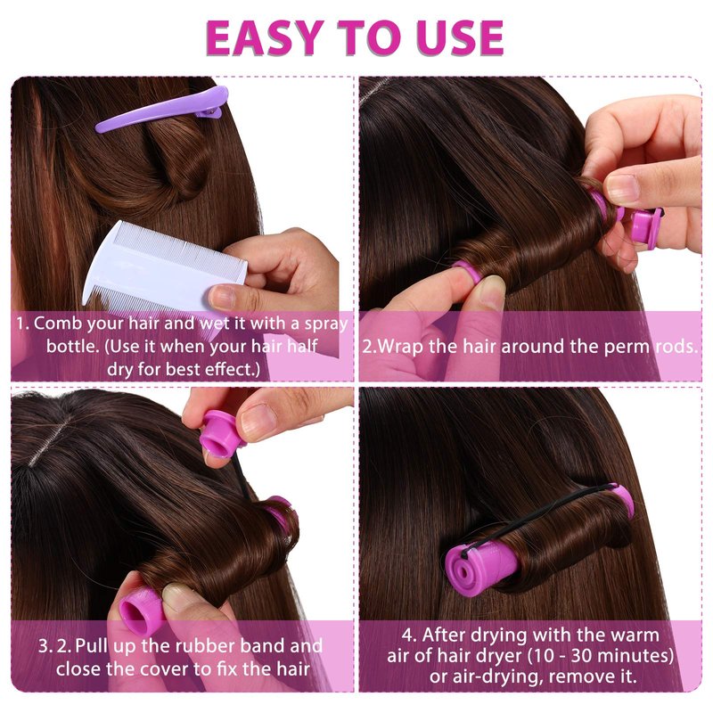 - Easy to use: these hair curler is convenient to use, you just need to separate a small section of half wet or dry hair, then rotate the hair around the rod and fix them with the rubber band, you can get a nice and beautiful perm within hours