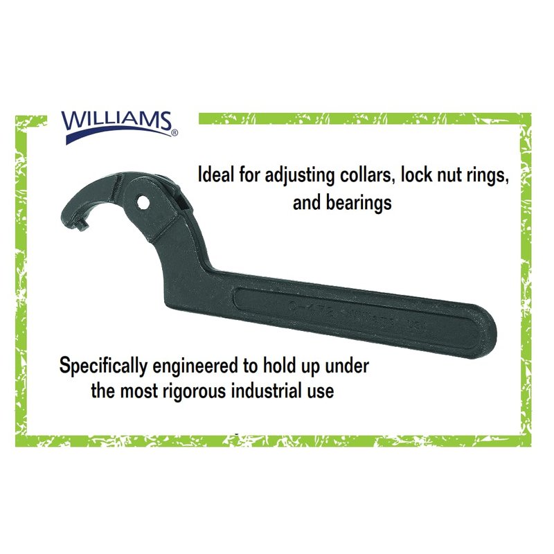 Williams JHW474 Adjustable Hook Spanner Wrench with Span Diameter of 2 to 4-3/4-Inch, Ideal for Adjusting Collars, Lock Nut Rings, and Bearings