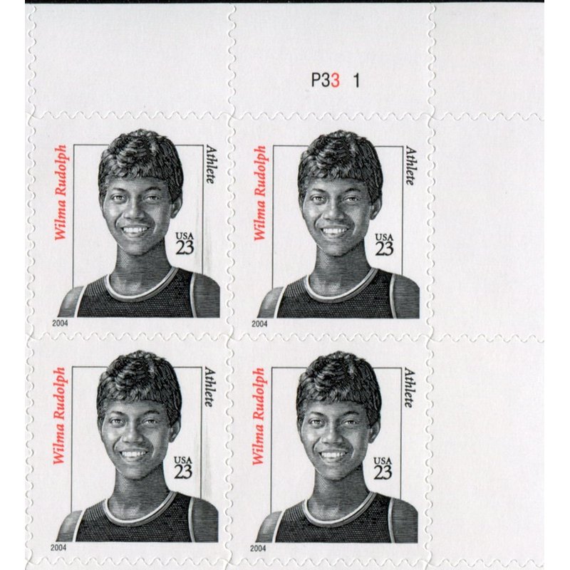 Wilma Rudolph ~ Black Heritage ~ Distinguished Americans Series ~ Runner ~ Sprinter #3422 Plate Block of 4 x 23¢ US Postage Stamps