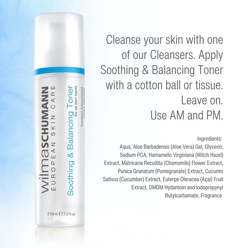 - REJUVENATING SKIN TONER: Wilma Schumann's Soothing and Balancing Toner is a unique concentrated face toner formulated to soothe and help balance the pH on all skin types. Our luxurious skin care solution is designed to increase radiance and vitality while helping smooth the skin.