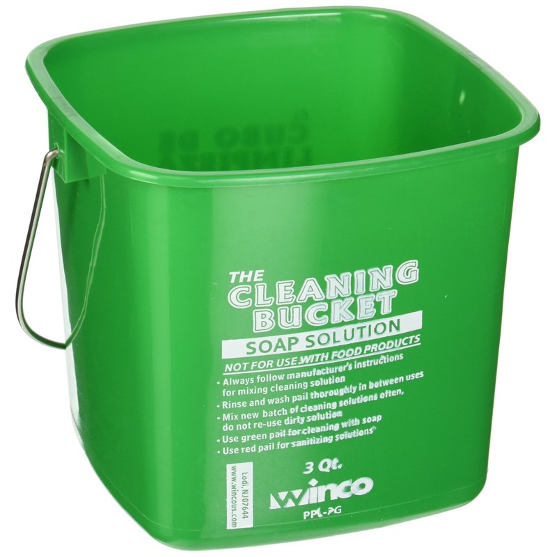 Winco PPL-3G Cleaning Bucket, 3-Quart, Green Soap Solution