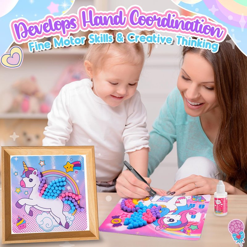 • 【Bonding Time】- Build lasting memories as you create together! Ideal for younger children to craft with older siblings or parents, the DIY Pom Pom Art Kit fosters quality bonding time and enhances family relationships.
