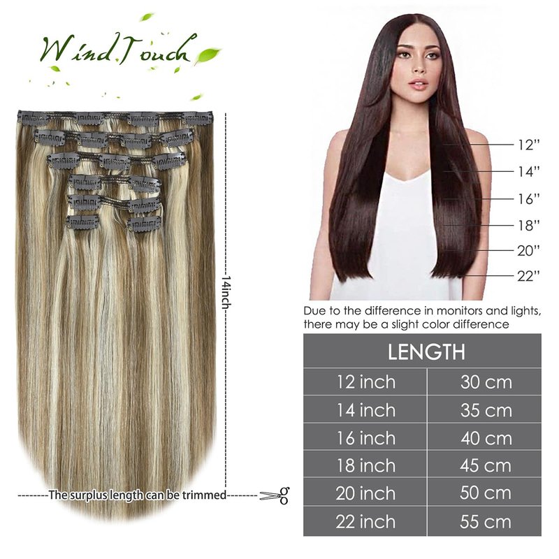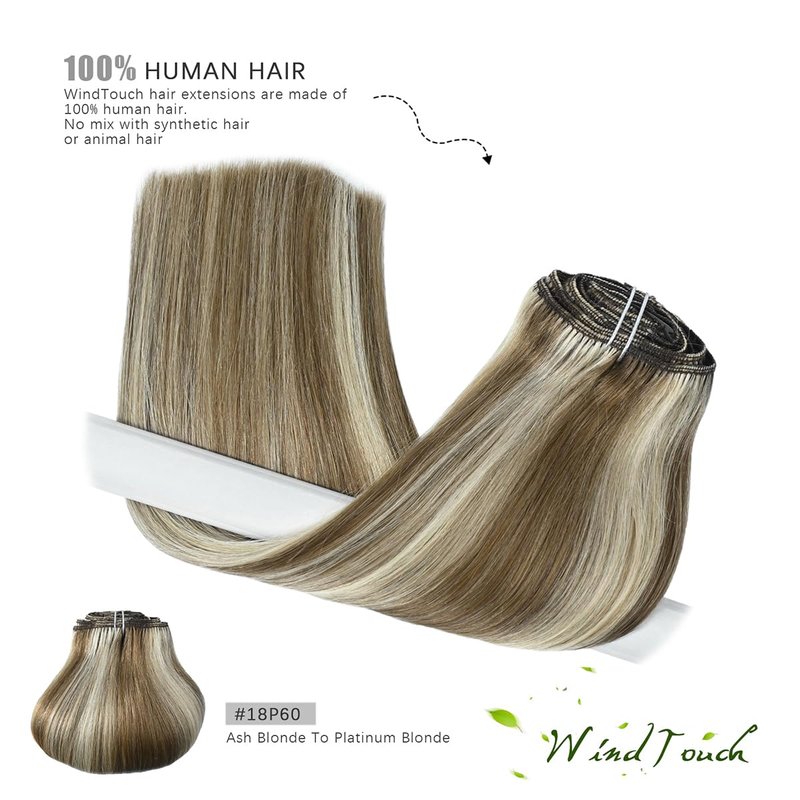 - ♡ High Quality: WindTouch clip in hair extensions are 100% real human hair with high quality, soft and smooth texture, just as good as your own hair. WindTouch hair extensions worth every penny, they are very thick. Each pack of clip in hair extensions is 120g. Usually one pack is enough for your full head.