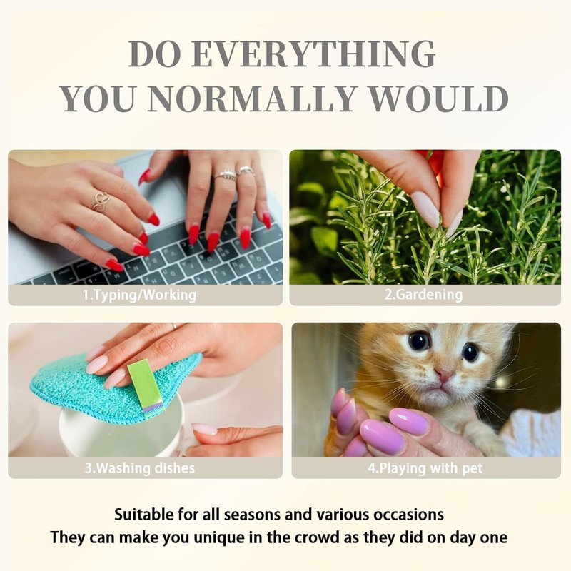 - Convenient & User-friendly:Natural press on nails press ons is easy to put on,file down and no need cured by UV light.Acrylic press on nails has good tenacity and premium gel texture,bring you brilliant shine finish.Enjoy instant nails kit acrylic set press on from now on