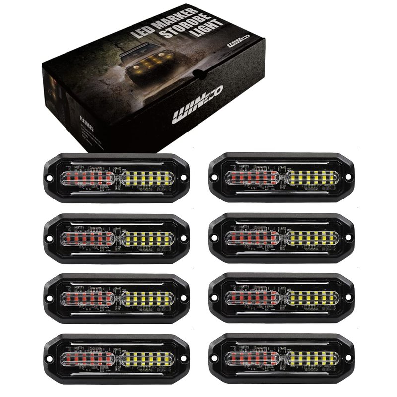 WINECO Amber/White LED Strobe Lights Kit - 8pcs 12-LED Flashing Emergency Warning Lights for Trucks, Cars and Vehicles