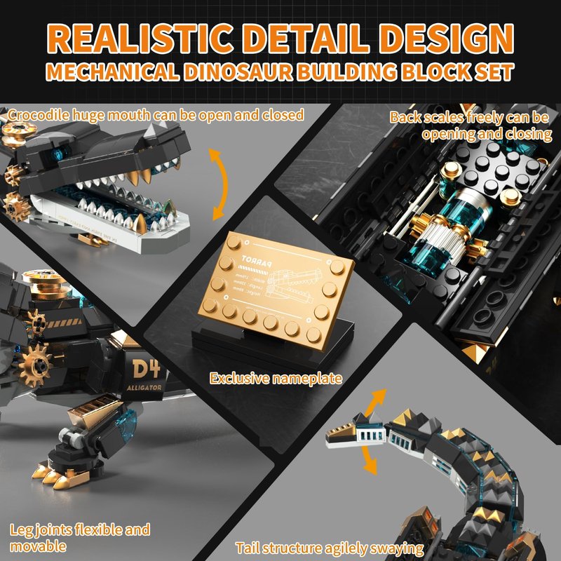 - 【Steampunk Element Design】This Dinosaur World Park toy product adopts the fantasy giant crocodile as the concept, and adds a lot of steampunk elements to the design, finally presenting a shape with exotic colors and strong mechanical style