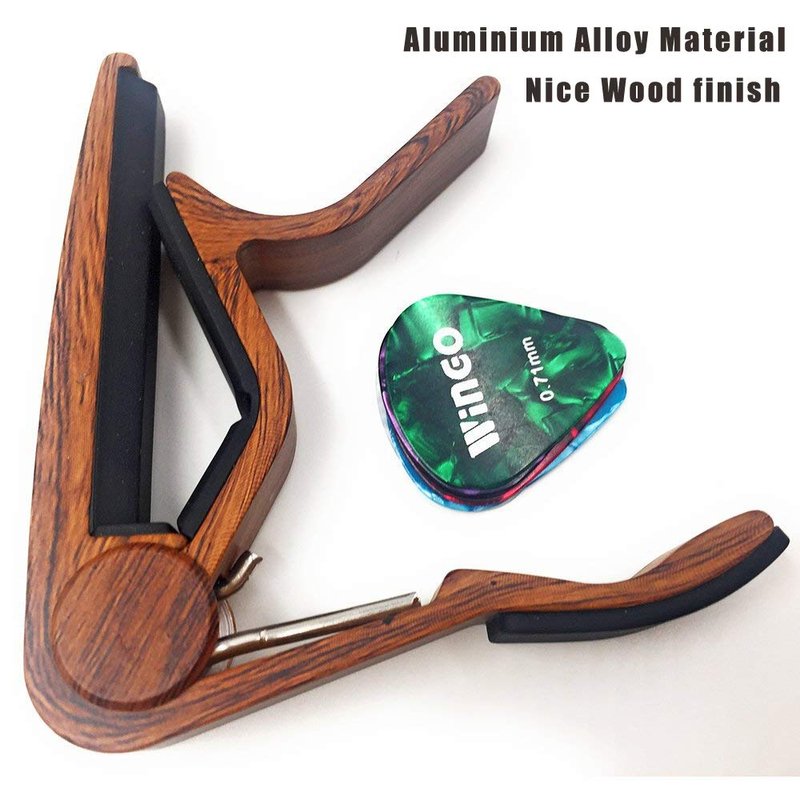 - ✔︎What you get: Unique beautiful wood finish capo with 5 medium picks. Rock & Roll with this capo,and it comes with lifetime warranty.