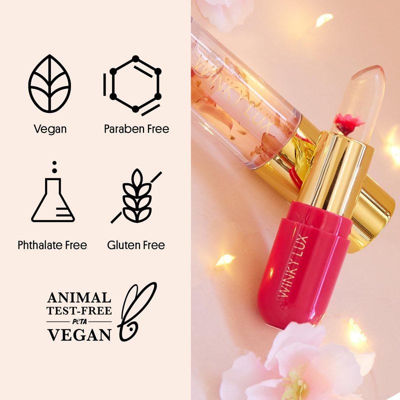 Winky Lux Winter Blossom Pink Lip Kit, Includes Pink Flower Ph Lip Balm & In the Stars Clear Lip Oil, Ph Color Changing Lipstick Kit, Holiday Gift Set
