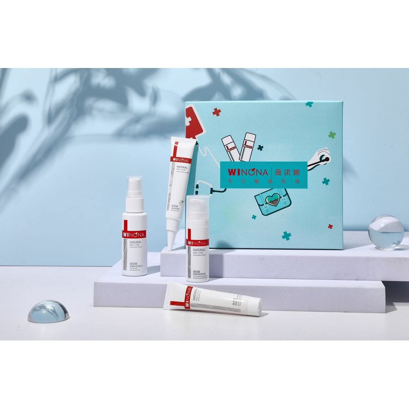 Winona Dry Sensitive Skin Gift Set. 30ml Soothing Moisturizing Lotion*1 15g Soothing Moisturizing Extra Care Cream*1 15g Soothing Moisturizing Cleanser*1 15g Facial Suncreen*1 Suitable for dry skin and sensitive skin.