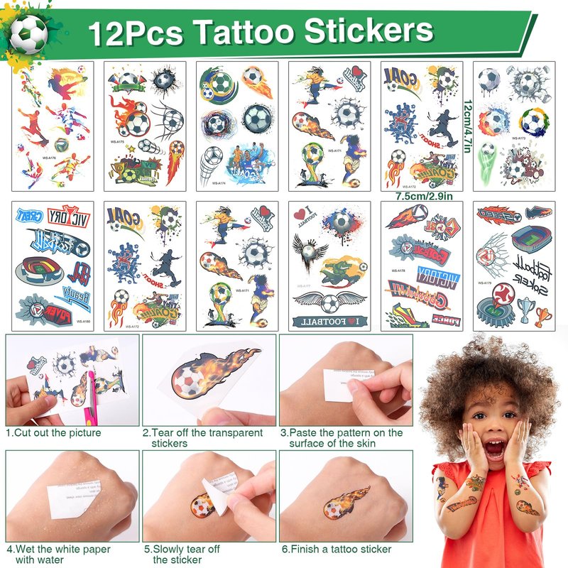 - 48Pcs Soccer Party Favors Supplies - You will get 12 non-woven soccer goodie bags, 12 soccer keychains, 12 soccer temporary tattoo stickers, 12 soccer theme slap bands. From personalized soccer treat bags to stickers, these favors will not only add to the decor, but also provide your guests with a keepsake. Your kids, especially those who like to play soccer, will love these fun and unique soccer gifts. Make your soccer party unforgettable with these amazing soccer party favors